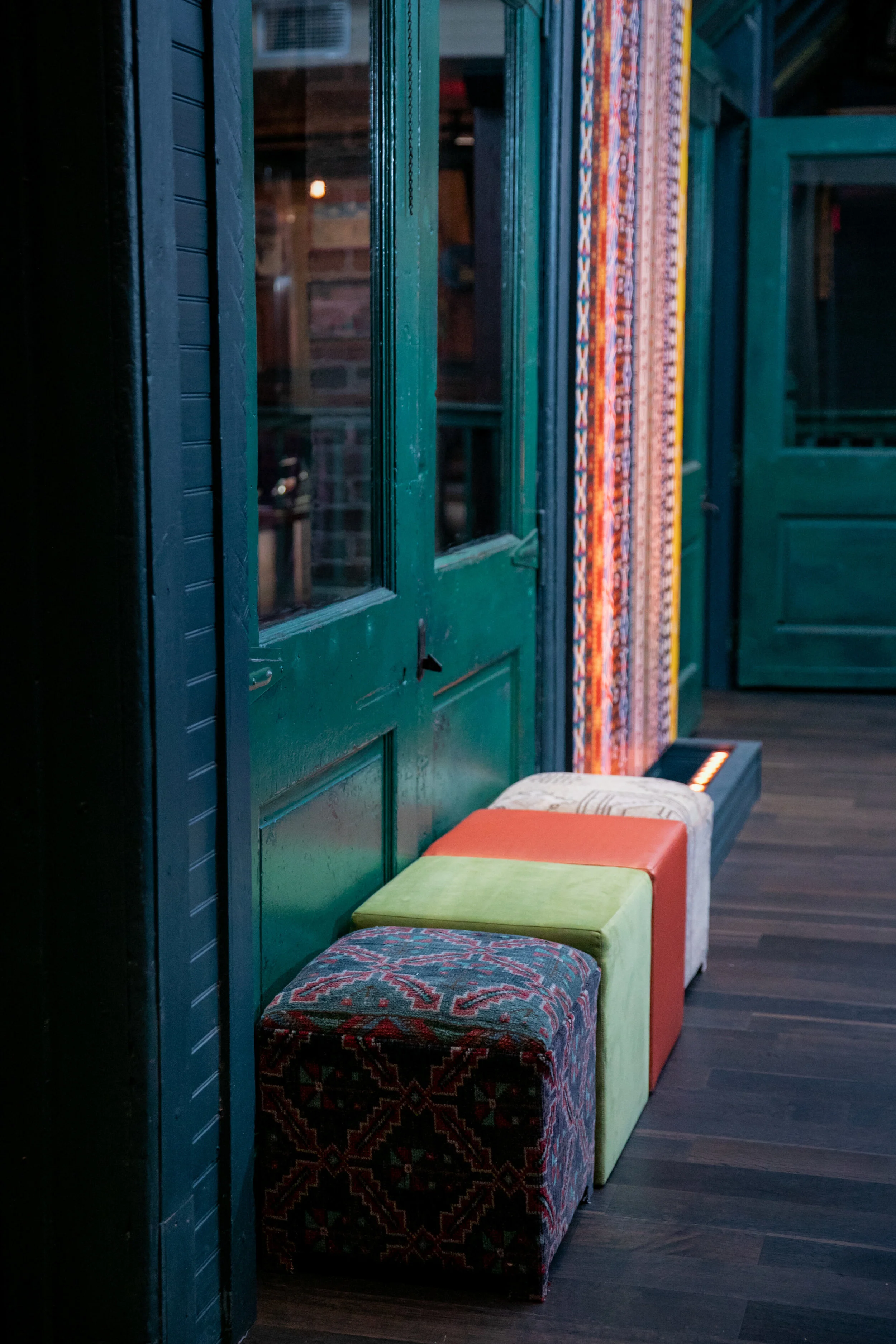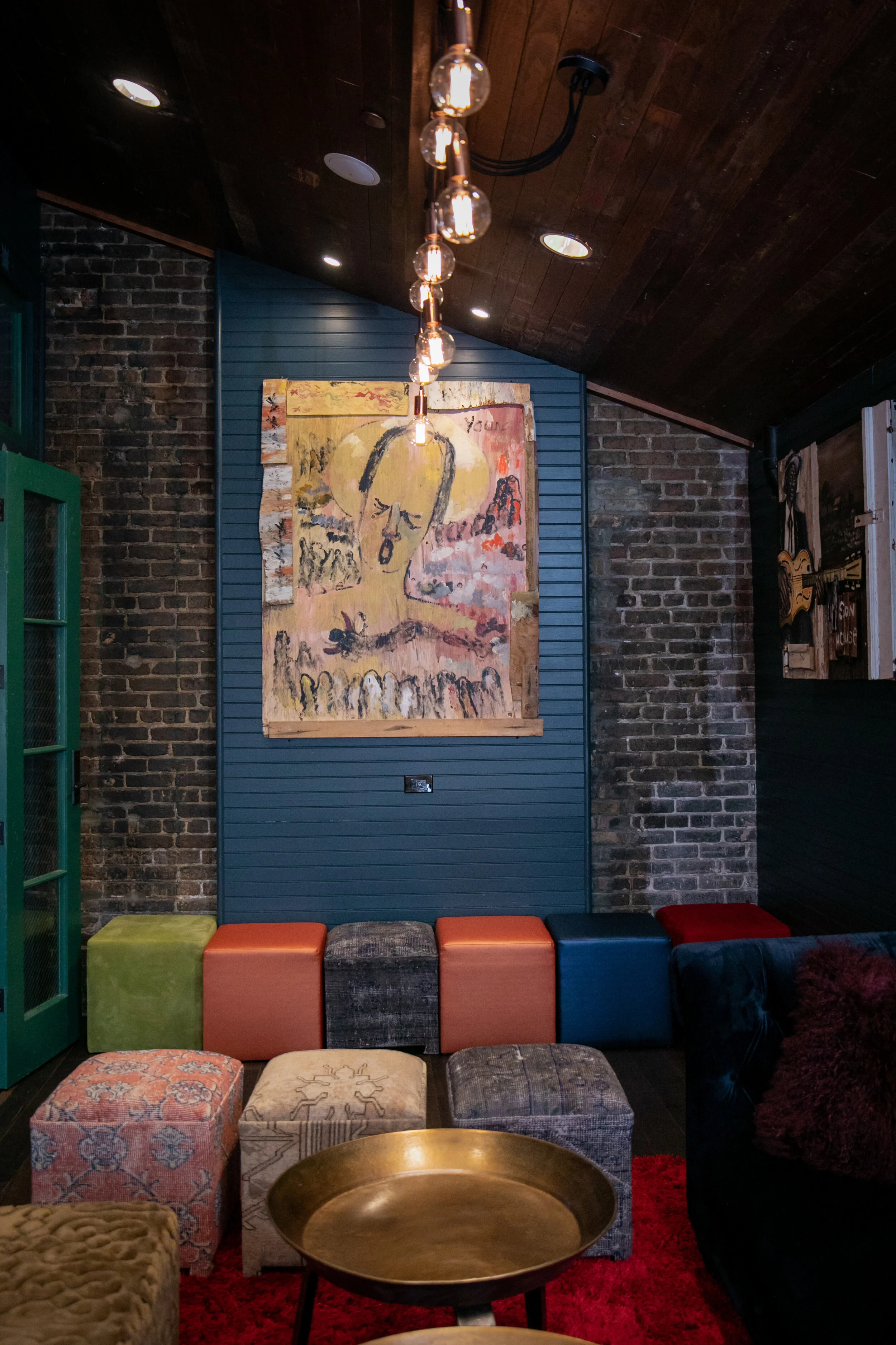 Other areas include a medley of patterned Keva Cubes & different colored Kelli Cubes offer unique seating options. Bringing all the tones together, Mohair Pillows accentuate the touchable textures of the seating area.