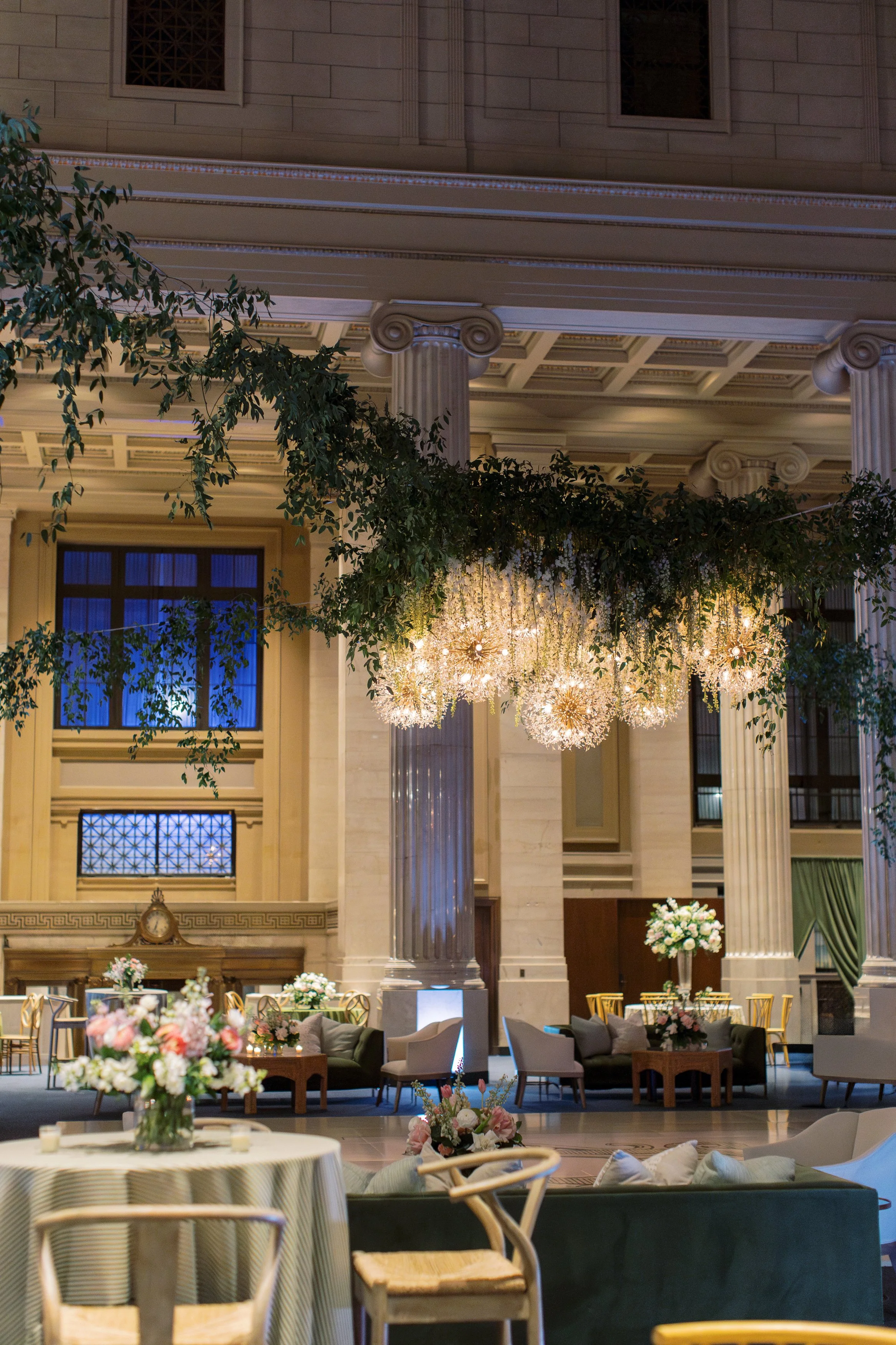 Throughout the venue, layered vignettes created inviting spaces for guests to gather. Soft seating moments featured Tristen Olive Sofas paired with the Ivory Annie Accent Chair and styled with the Harbor Console Table, blending comfort with structure.